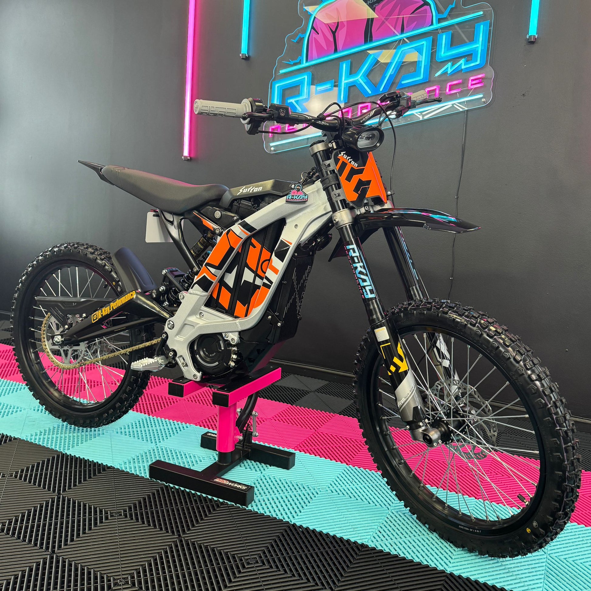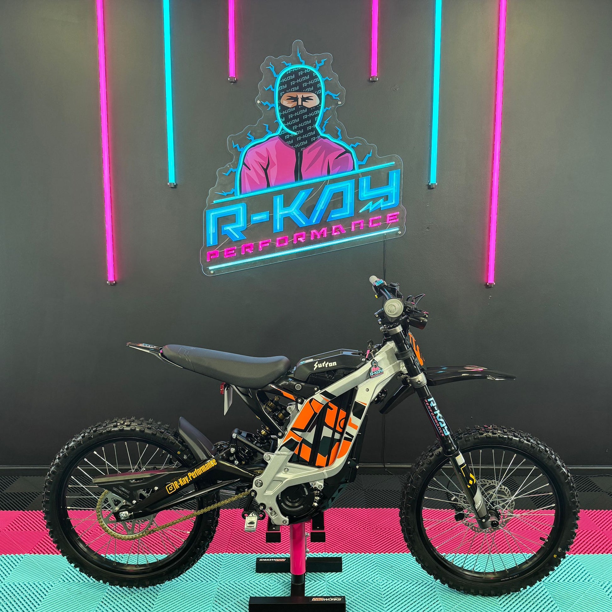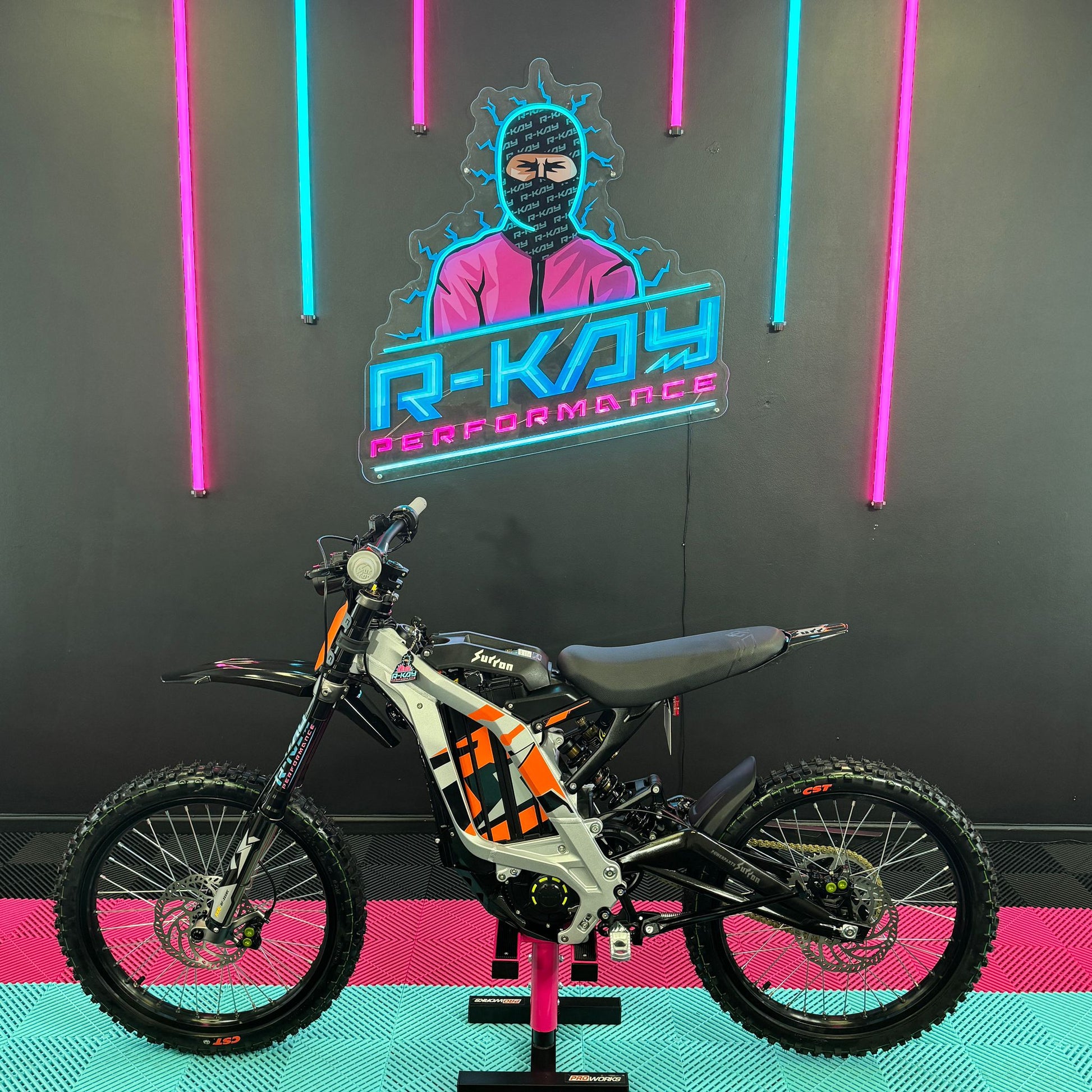 At R-Kay Performance, we're thrilled to offer the brand new Surron Light Bee X, a CE-approved UK-spec model. It's finished in Silver/White with eye-catching Orange OEM stickers. With the latest 60v 40Ah Samsung Cell Battery with updated connection and plug, it delivers improved power and range, reaching speeds of up to 50mph. Plus, it comes with full 18 months warranty! It's an incredible package! 🎯