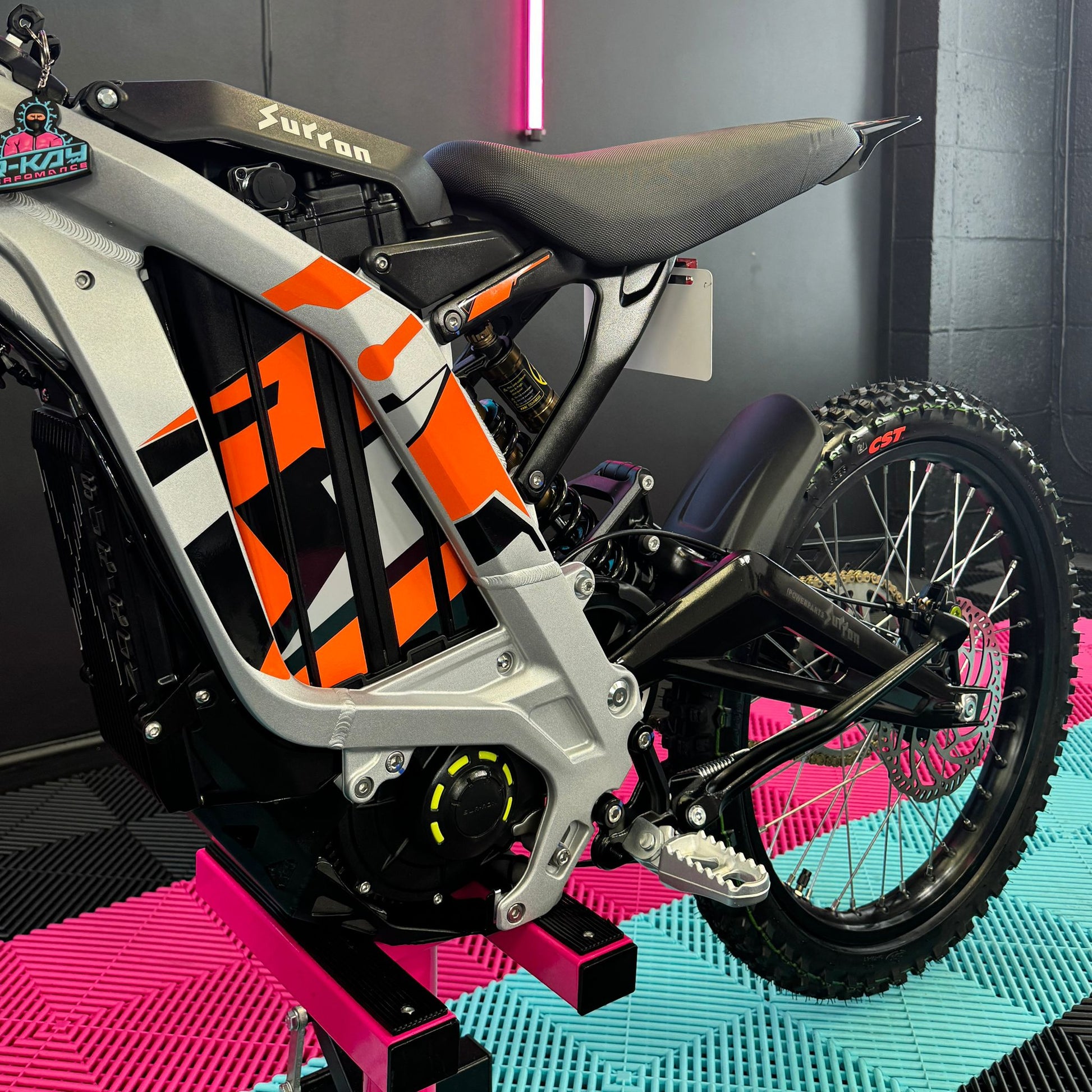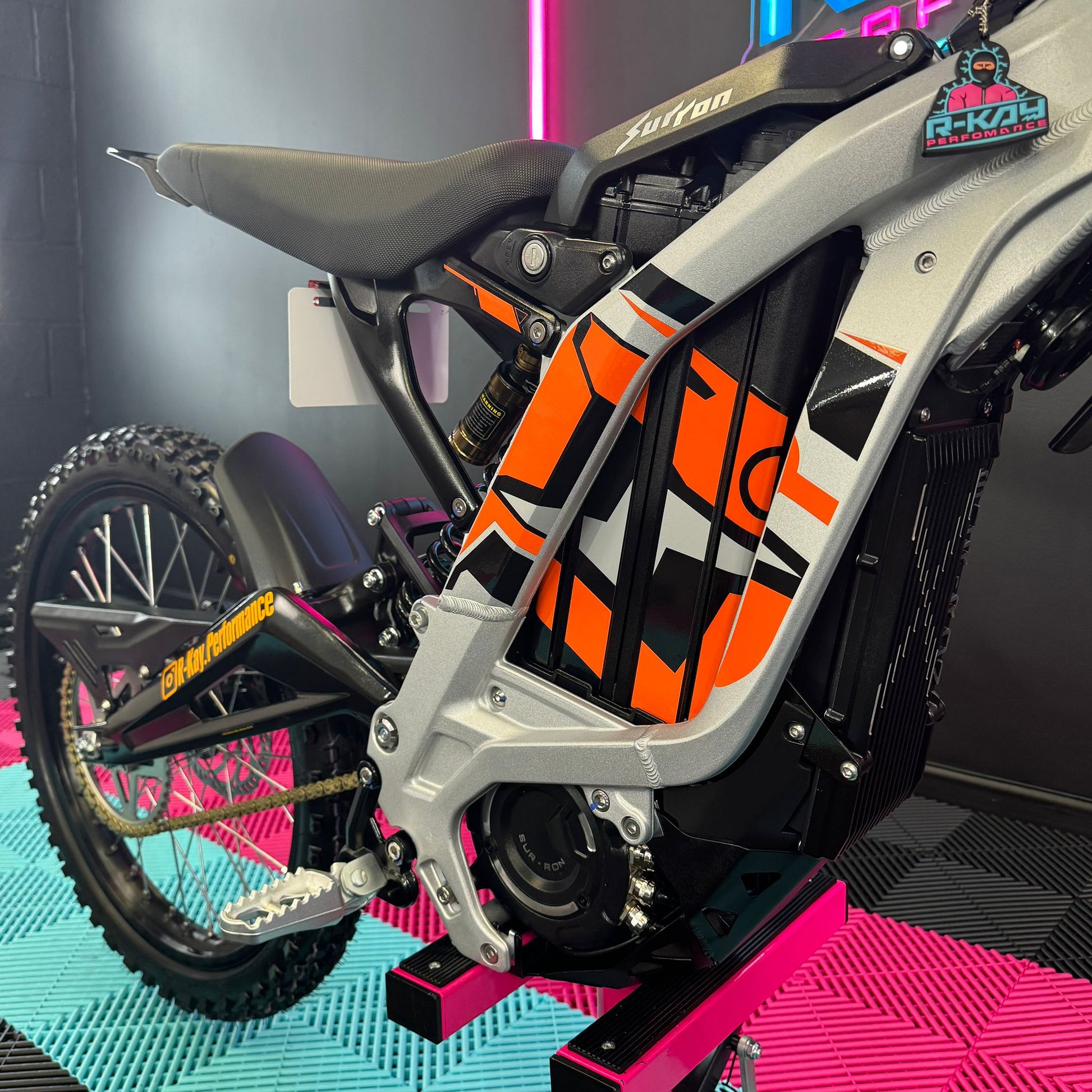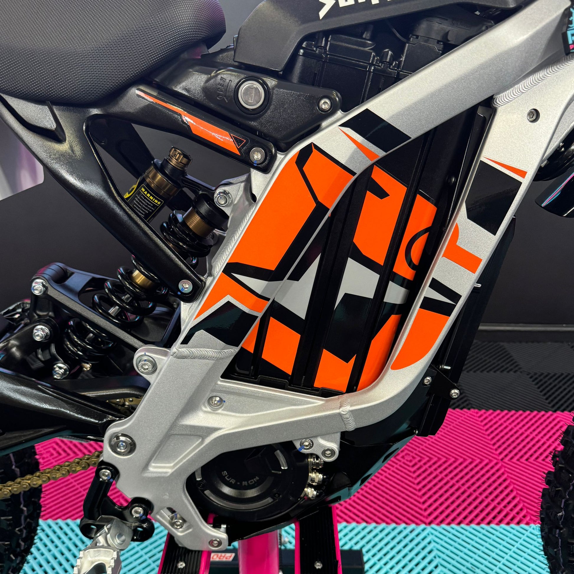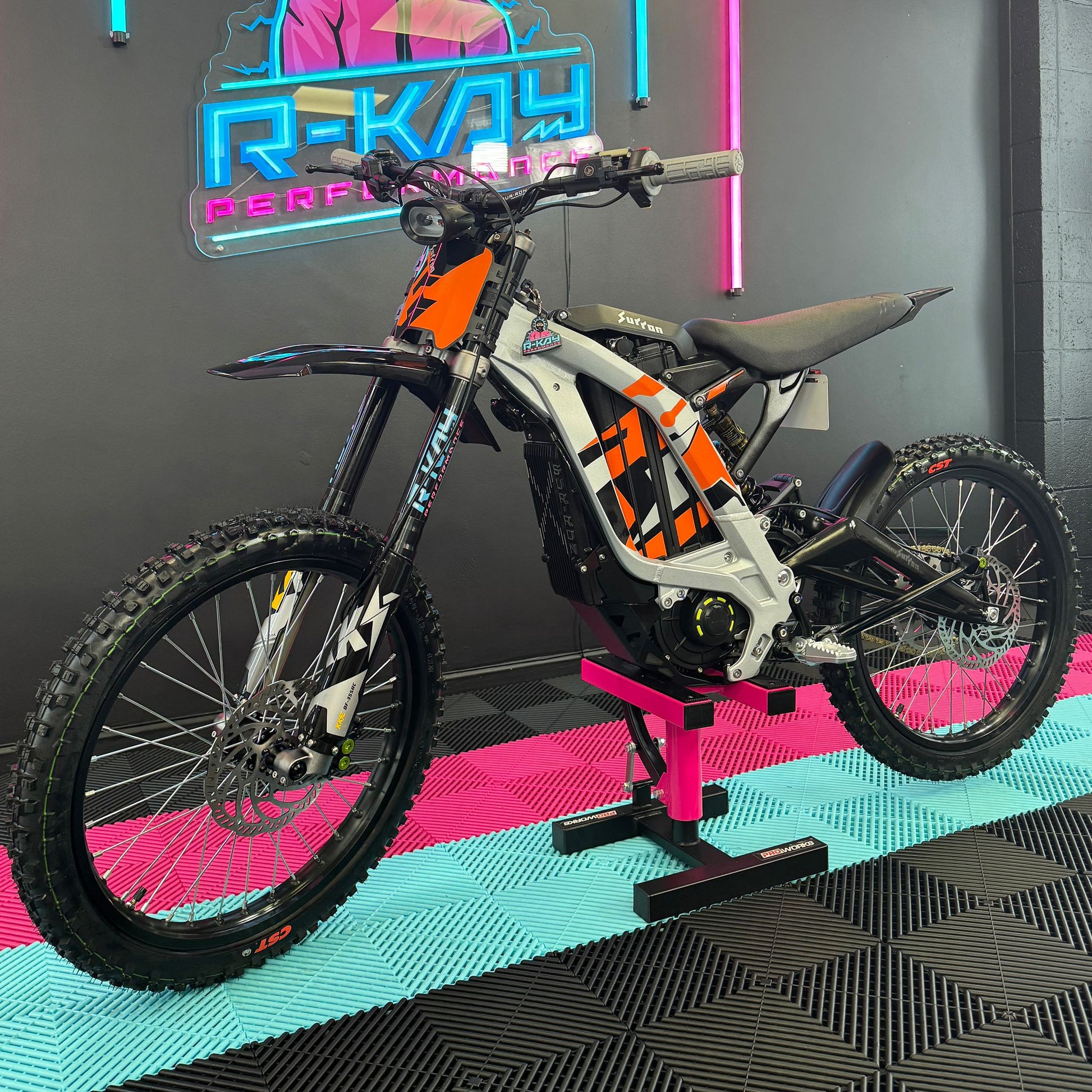 At R-Kay Performance, we're thrilled to offer the brand new Surron Light Bee X, a CE-approved UK-spec model. It's finished in Silver/White with eye-catching Orange OEM stickers. With the latest 60v 40Ah Samsung Cell Battery with updated connection and plug, it delivers improved power and range, reaching speeds of up to 50mph. Plus, it comes with full 18 months warranty! It's an incredible package! 🎯